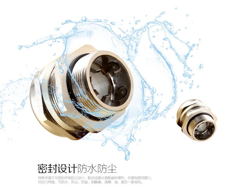 使用方法: 金屬電纜防水接頭是電纜的配套產品,接頭可將電纜鎖緊,另一端可接入設備箱體上,也可以根據選用螺紋接入進出口為內螺紋的電動設備上。